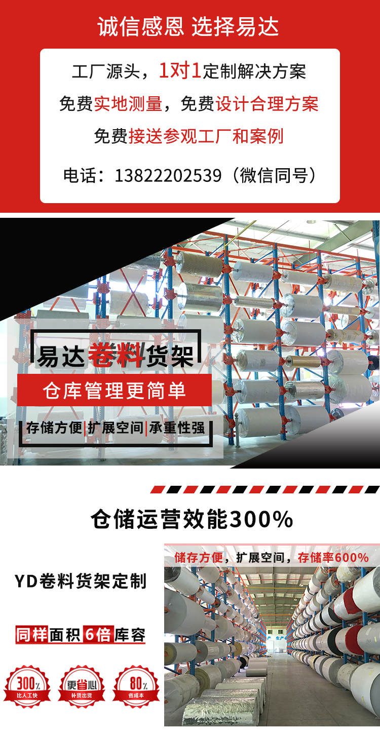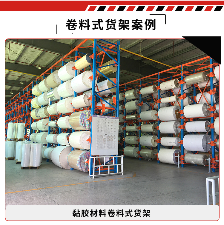 卷料一般都以电线、铜线,PE胶,PE膜等为主,在卷料中间都会有一根比较牢固的撑杆支撑卷料,所以专门为卷料设计了这种卷料仓库货架,也叫卷料放料架,功能齐全,实用性高。