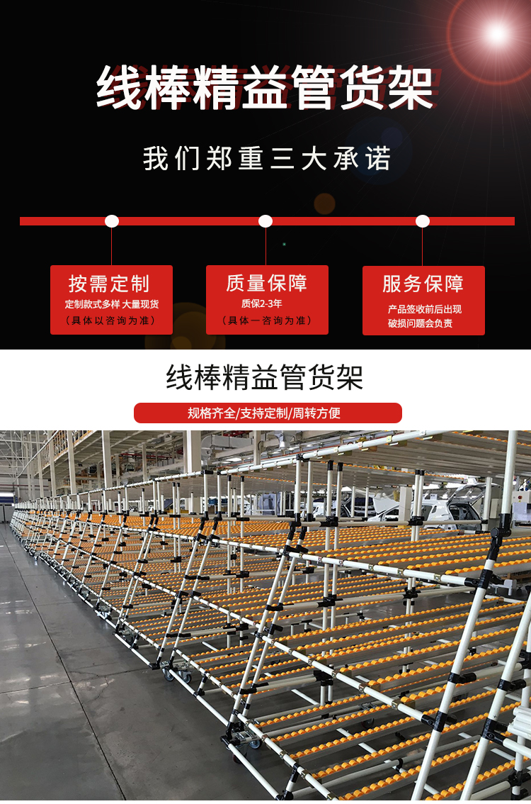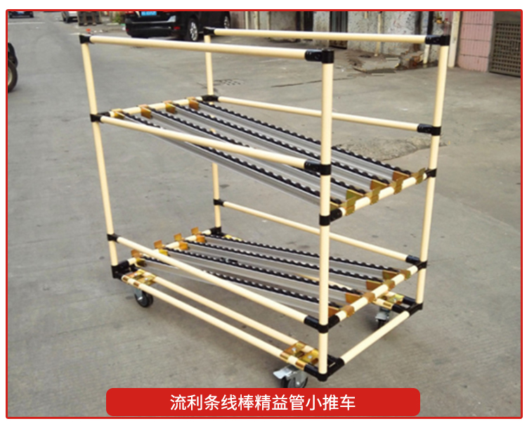 精益管货架线棒流利条仓库货架物料周转车满足现代化企业低成本、低损耗、高效率的物流供应链的管理需要,货物存取方便,可做到先进先出,百分之百的挑选能力,流畅的库存周转。